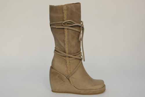 --> Details : Ladies Destroy Disko Beige Leather Wedge Boots 6